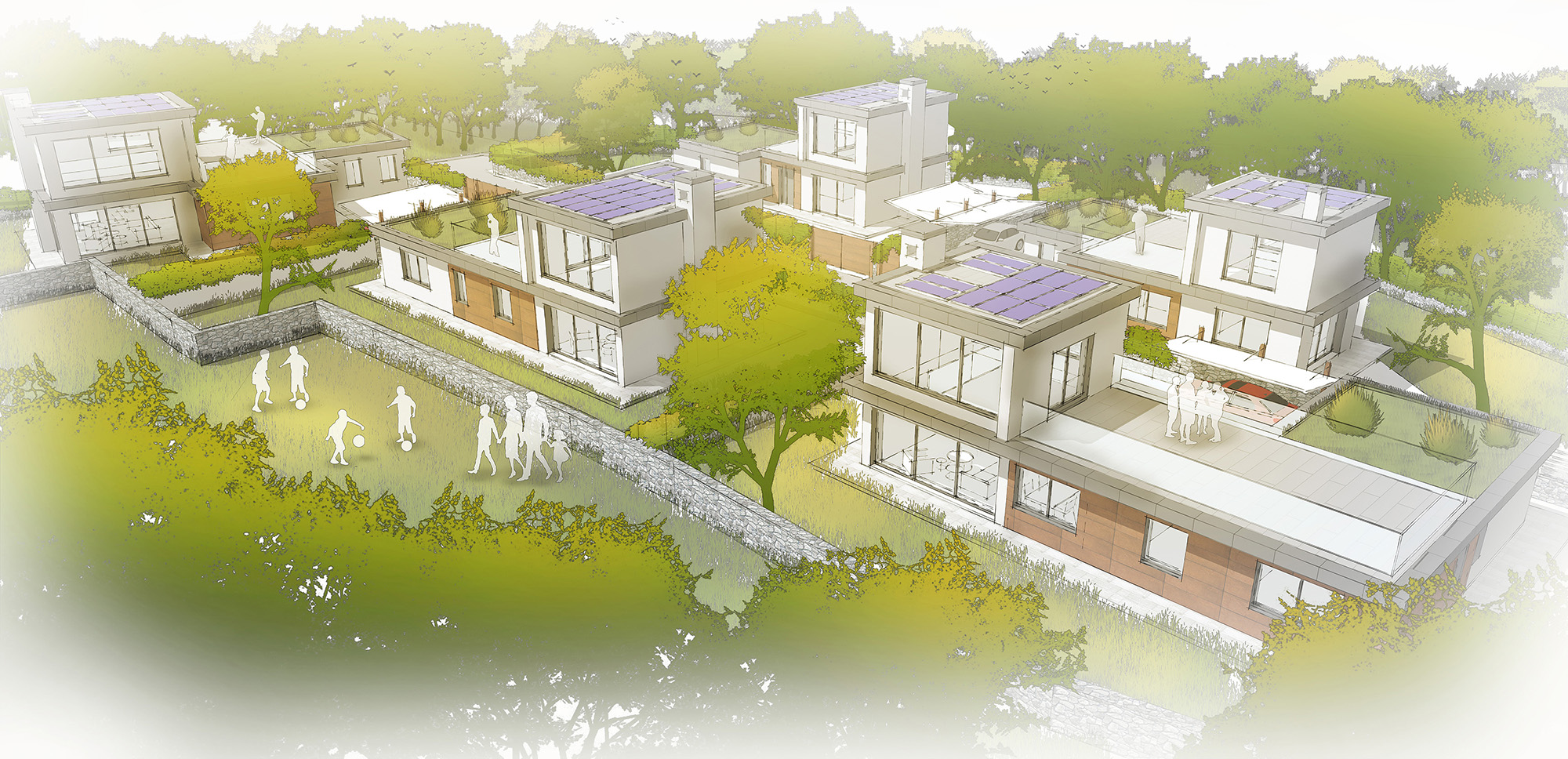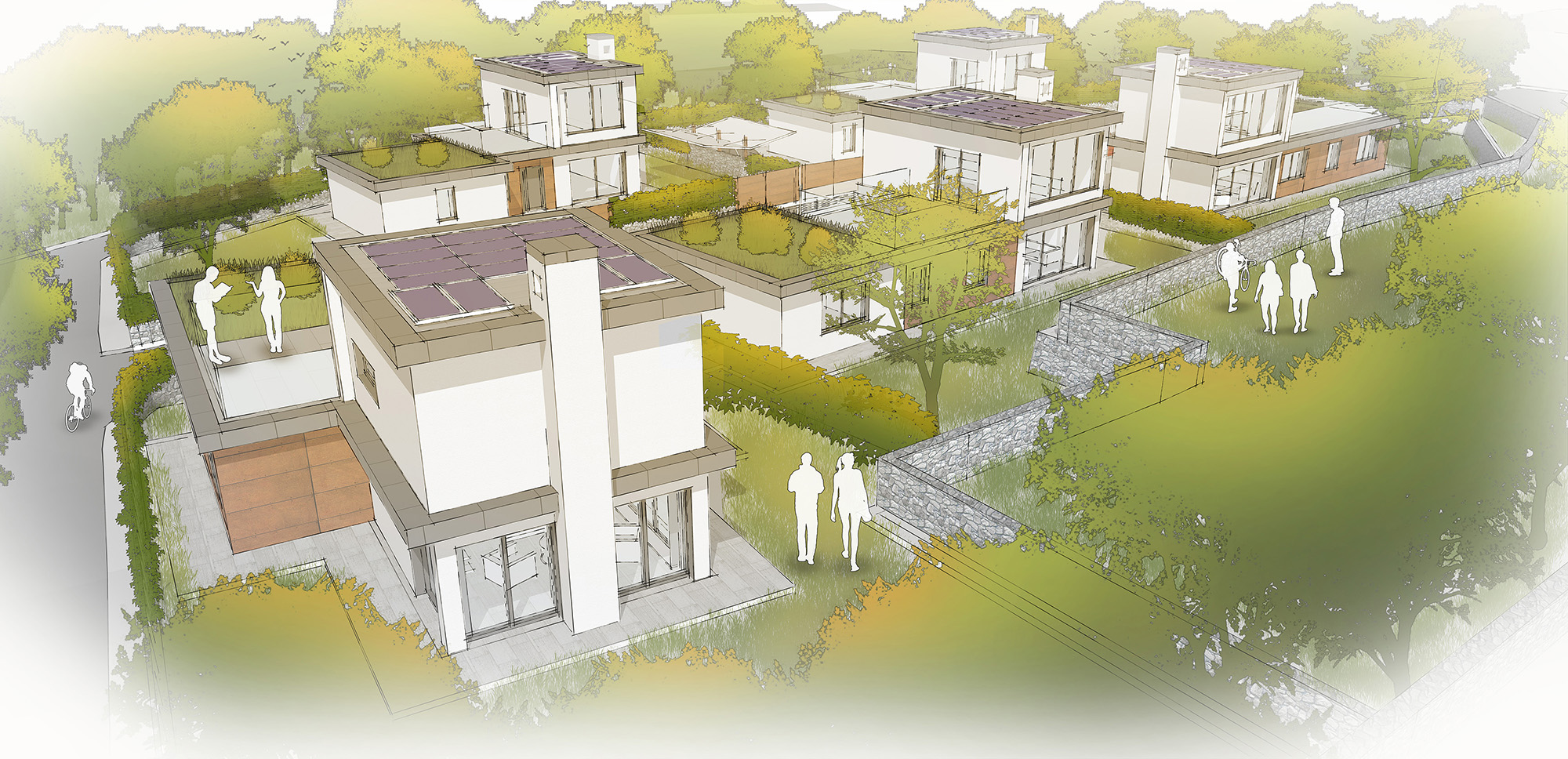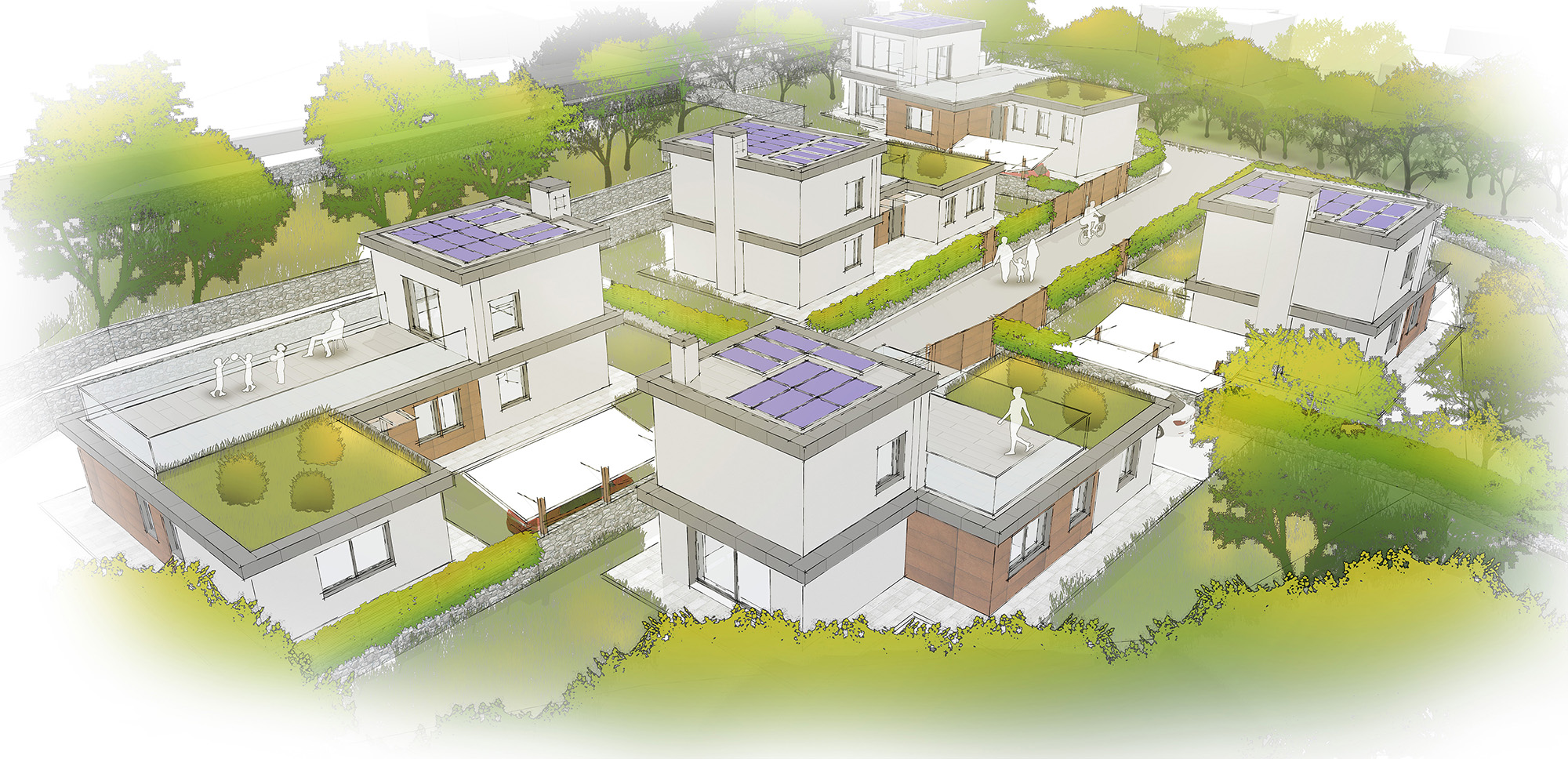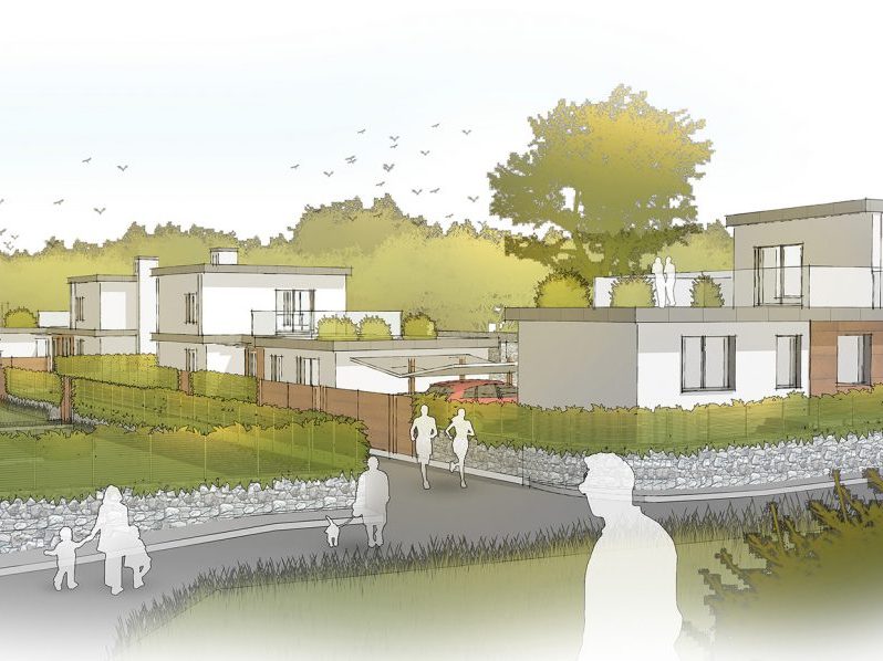 Progetto strutturale di un complesso di case unifamiliari nel borgo carsico di Aurisina (Trieste), di cui quattro realizzate in muratura armata per ottemperare alle richieste delle moderne normative sismiche pur mantenendo sistemi costruttivi tradizionali, ed una realizzata in legno con tecnologia platform frame.