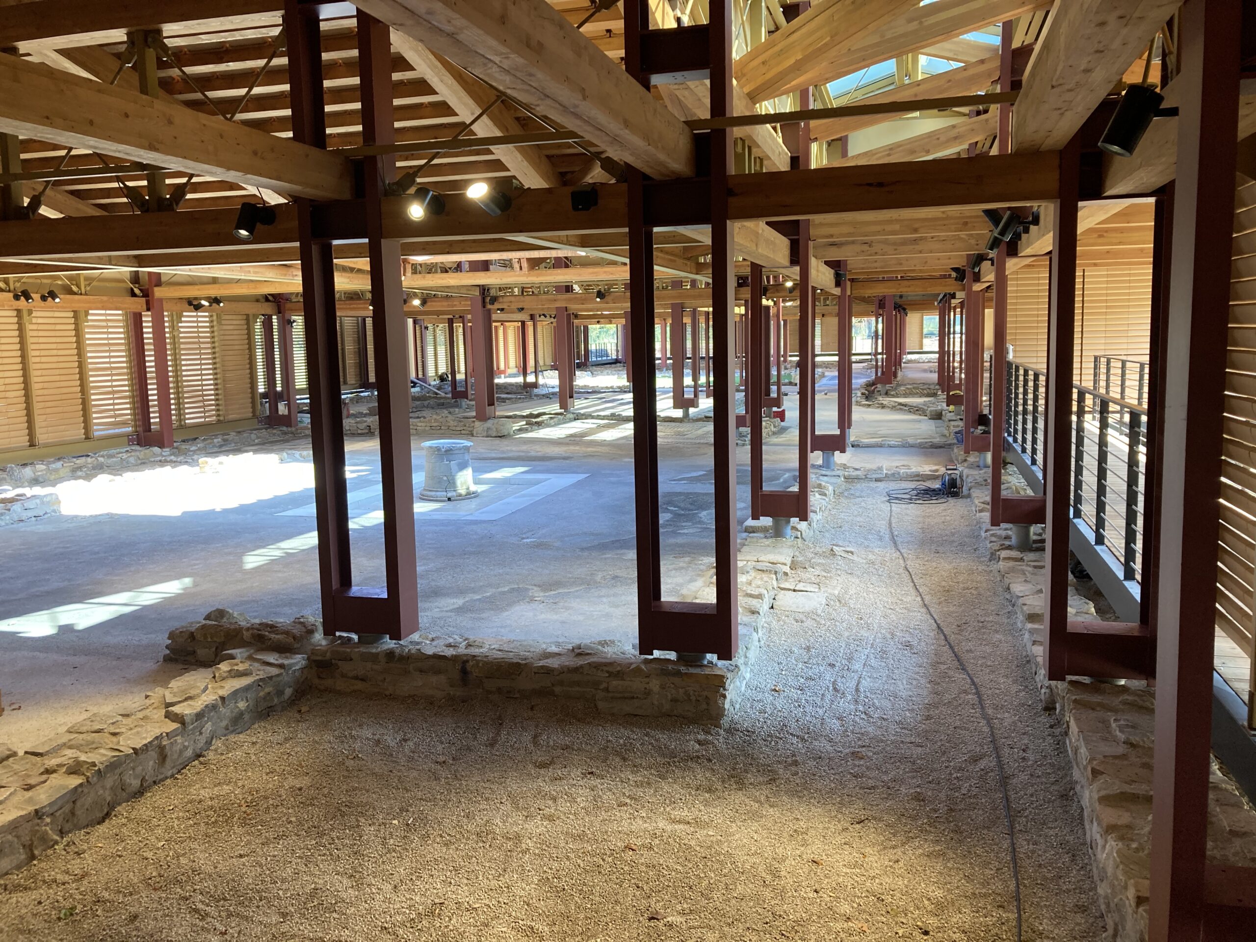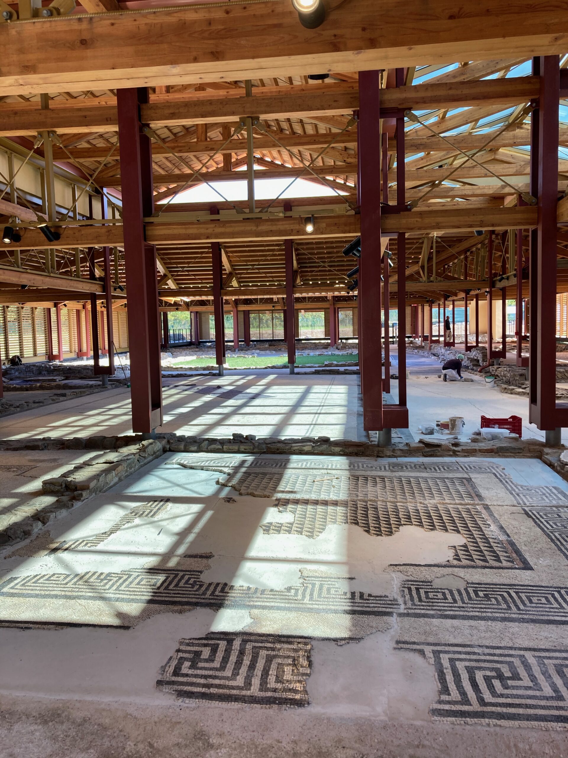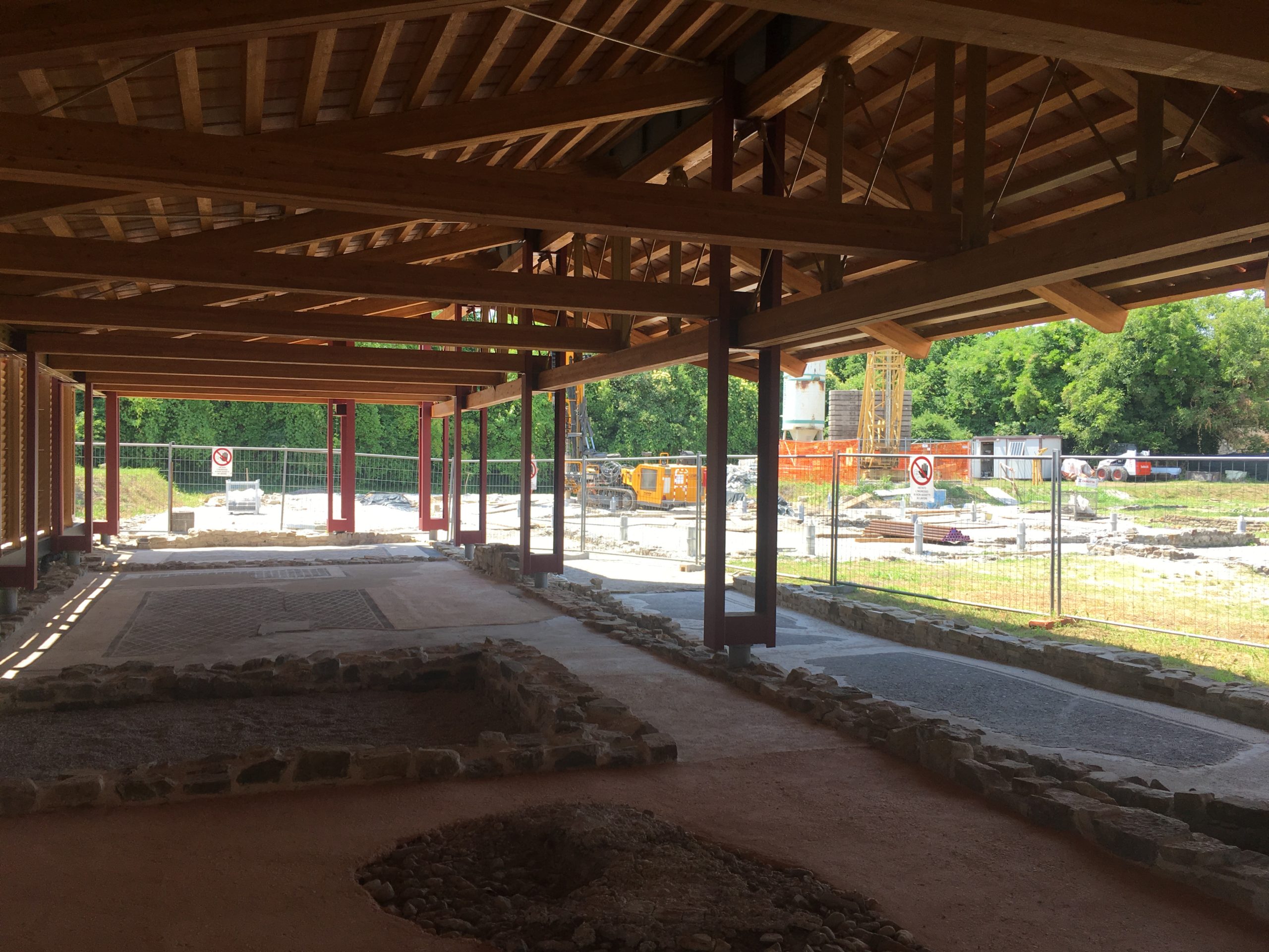 Il cantiere ha presentato da subito notevoli difficoltà, dovute all’articolata struttura metallica di sostegno della copertura, verificata millimetricamente e adeguata in corso d’opera in quanto adattata alle condizioni dei ritrovamenti archeologici, e alla presenza di diffusi mosaici in loco, elementi che hanno portato ad operare con il controllo continuo della Soprintendenza.