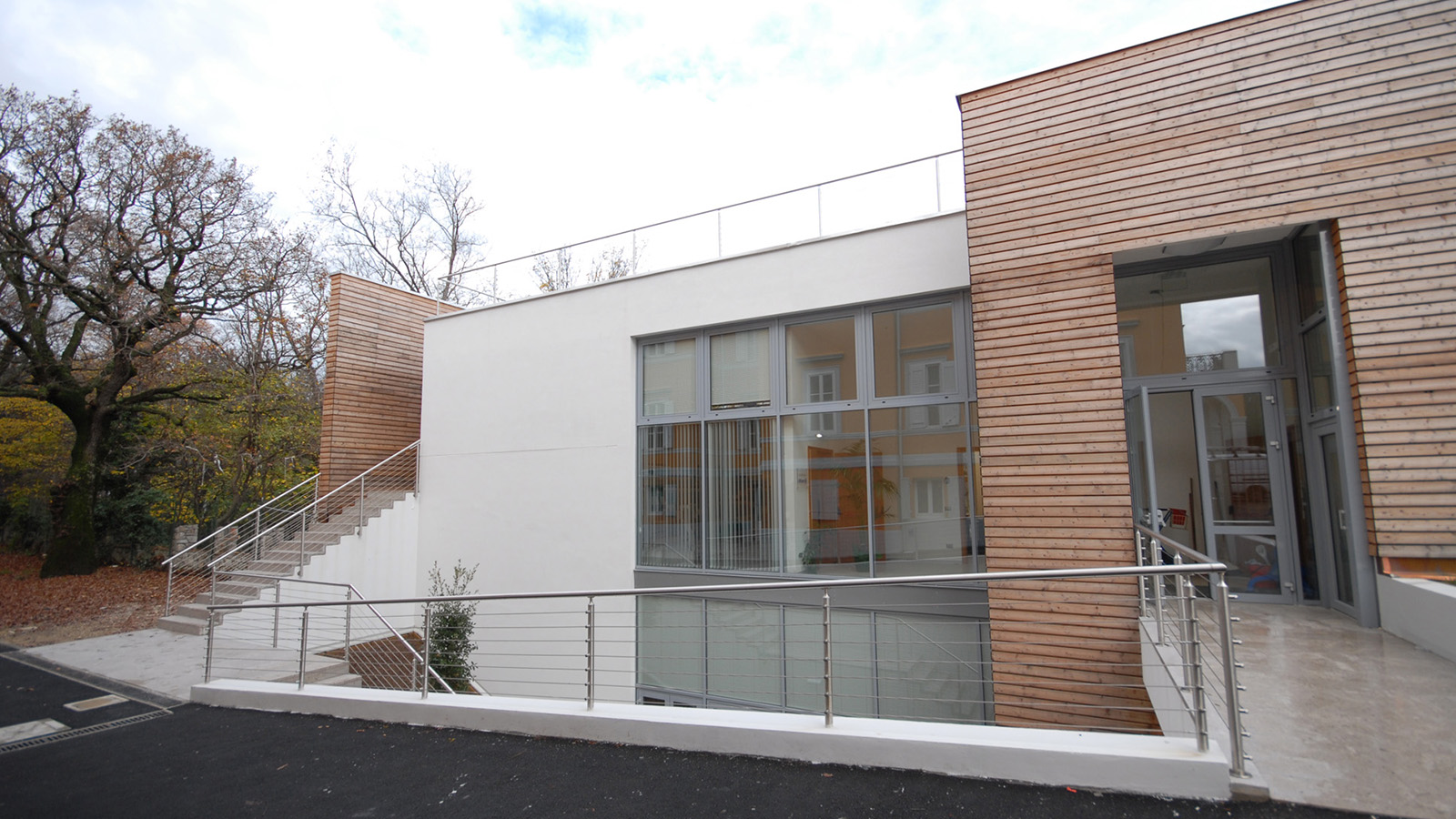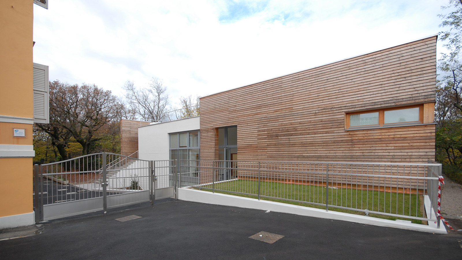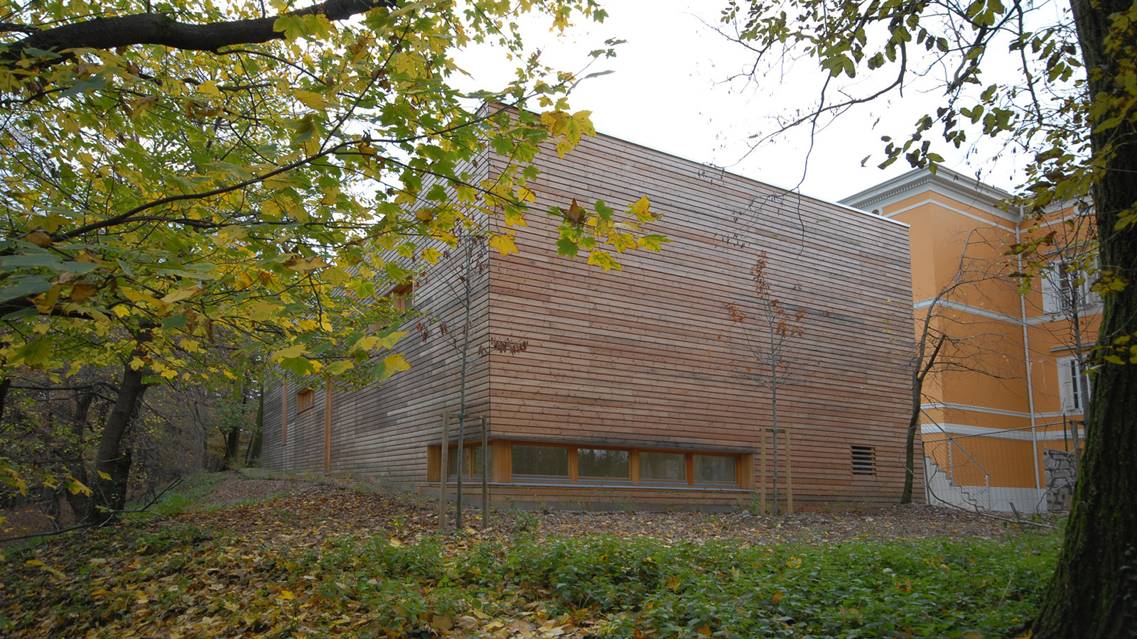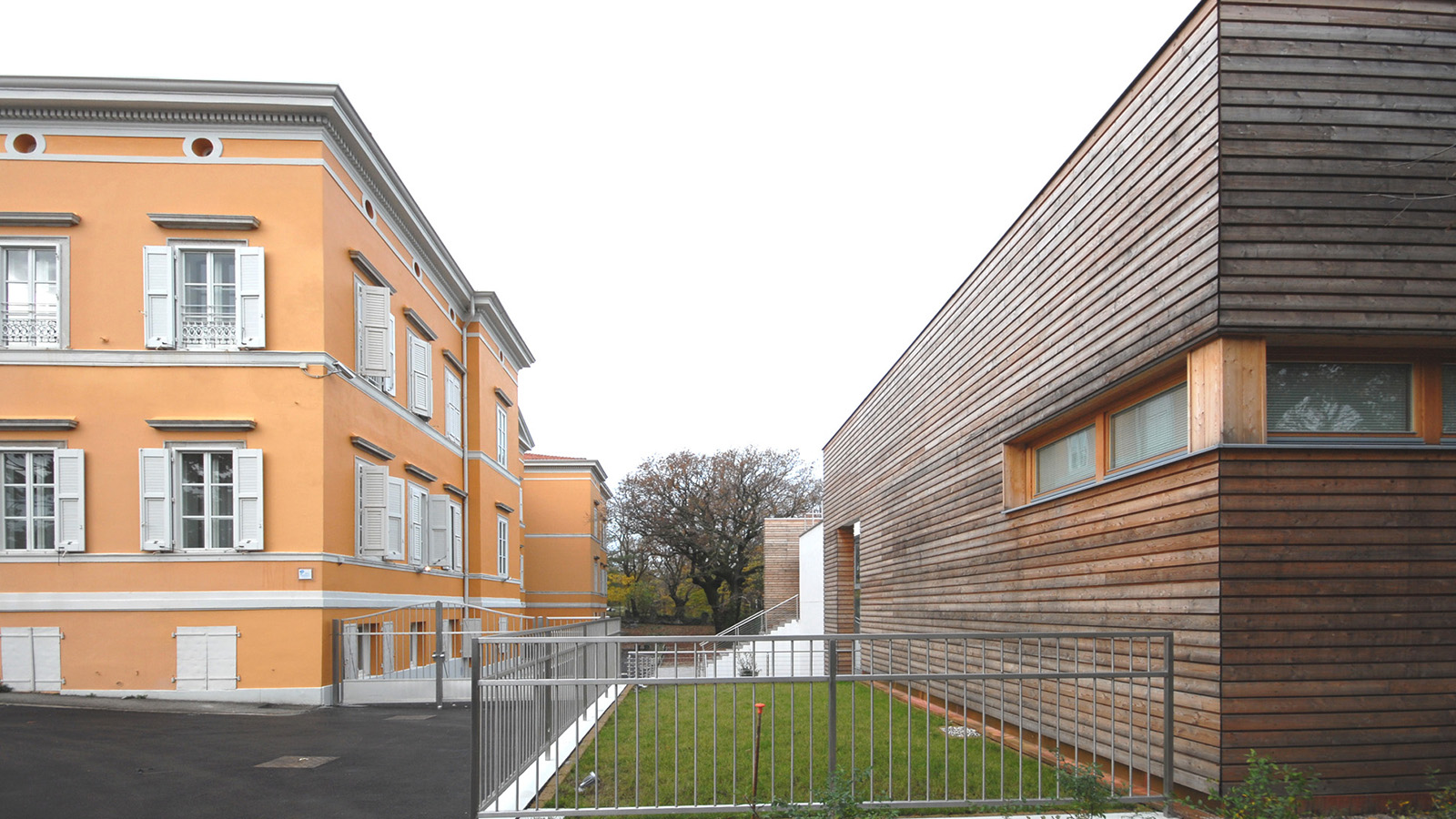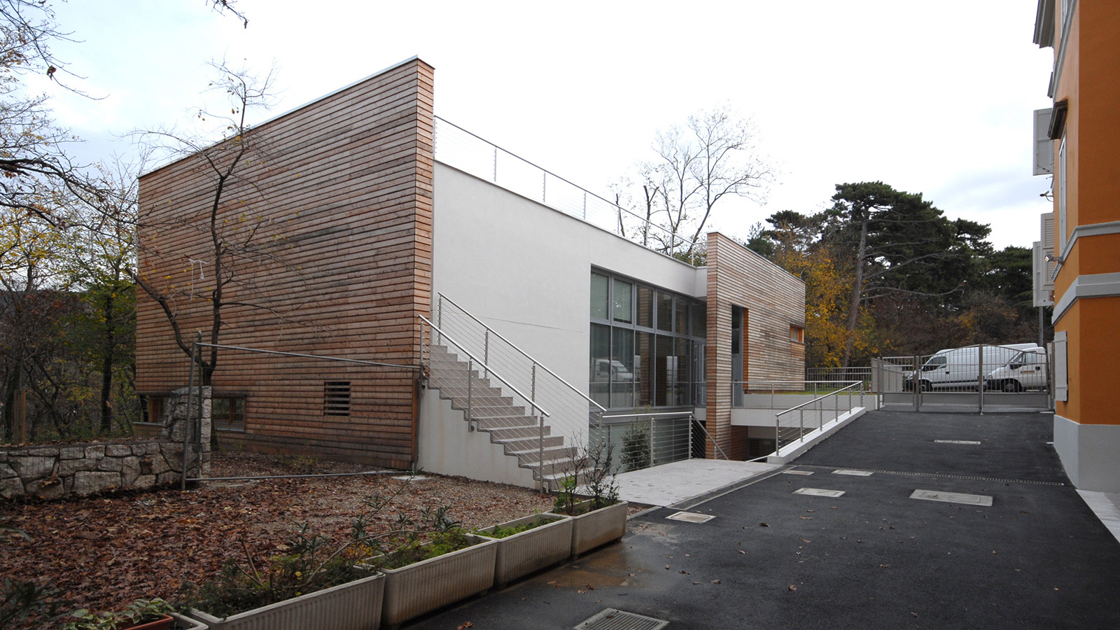 Realizzazione di un nuovo edificio aule per la sede centrale del MIB Trieste School of Management, sita presso un prestigioso palazzo storico di fino Ottocento, presso il Bosco Farneto a Trieste.