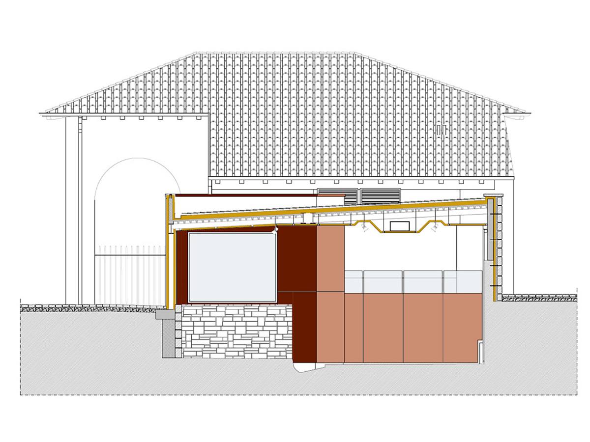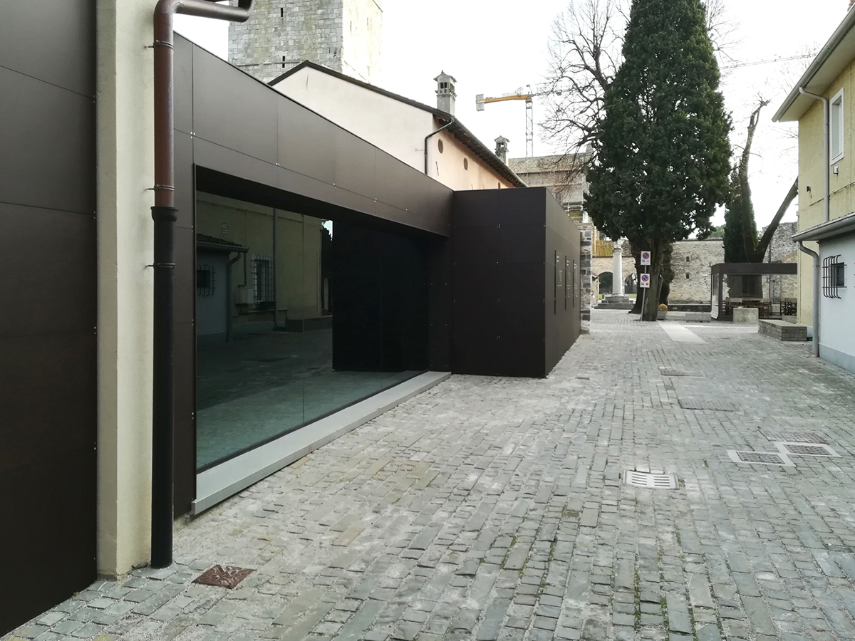 L’ideazione del nuovo volume ha imposto particolare attenzione nella progettazione degli aspetti strutturali legati al posizionamento delle fondazioni in configurazione rispettosa dei reperti emersi, ma particolare cura è stata anche posta al disegno dei dettagli costruttivi, realizzati in acciaio corten e vetro, con stile contemporaneo che ben si rapporta per aspetti cromatici e materici ai manufatti storici.