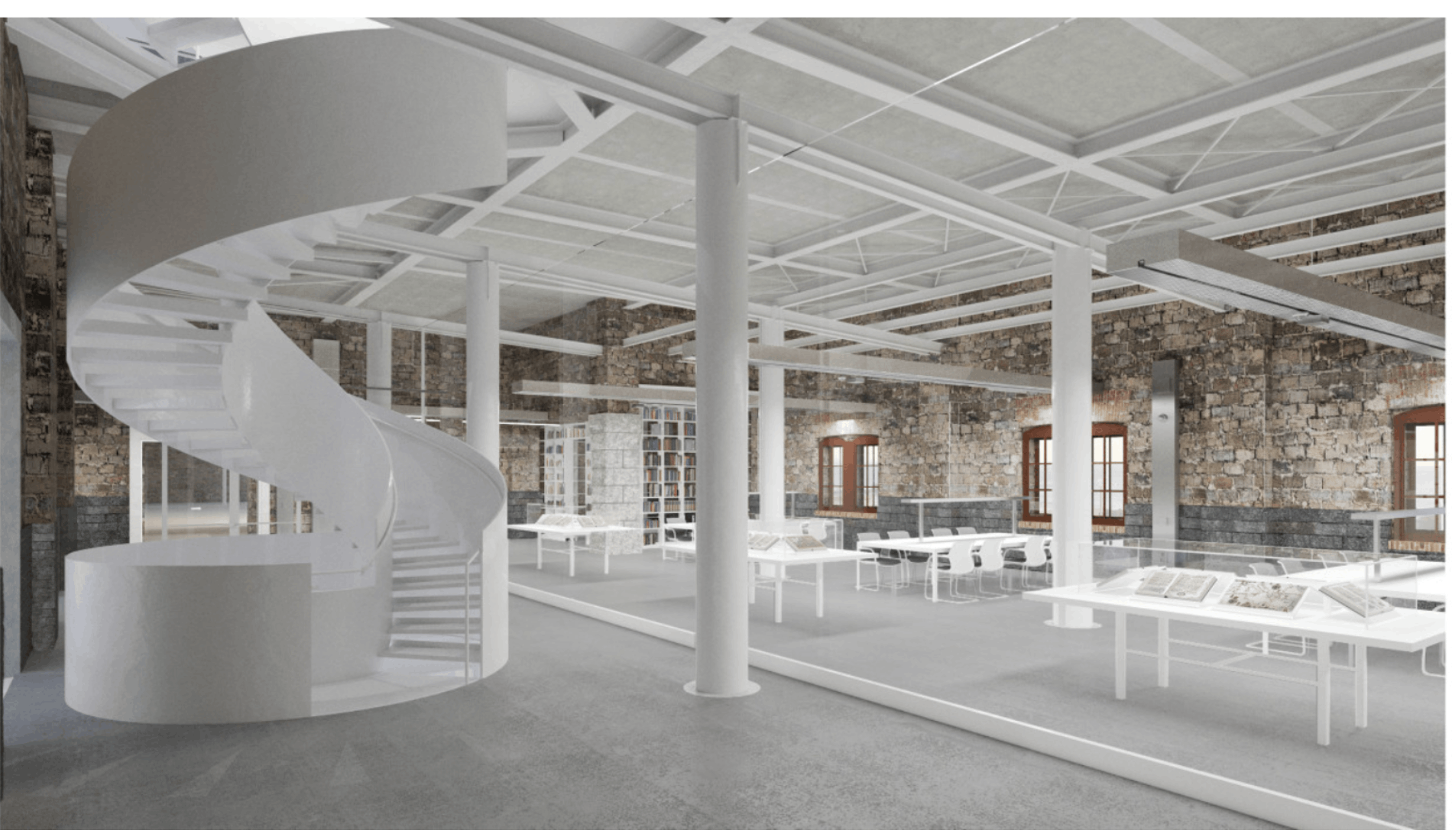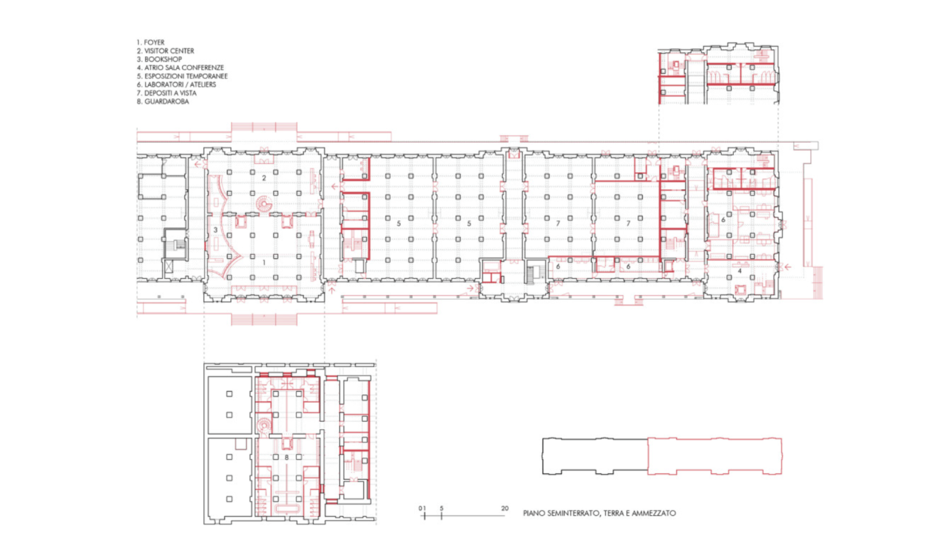 Il concept museografico ruota attorno all’idea di valorizzare la spazialità degli ambienti esistenti, in cui mantenere la struttura e le murature esistenti libere da allestimenti museali o espositivi, e dove l’itinerario di visita sia evocativo e coerente con le collezioni esposte, permettendo al visitatore di muoversi attraverso le sezioni tematiche come lungo un racconto lineare inserito in un’unica cornice narrativa, coadiuvata dalla tecnologia e della realtà aumentata e multimediale.